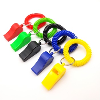 넥 랜야드 5 팩 파티가 있는 다채로운 플라스틱 휘파람, 스포츠 및 안전 소음 발생기